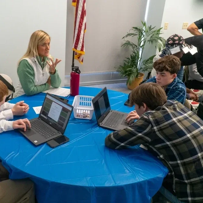 After lunch, students had the opportunity to hear from industry mentors about the day-to-day responsibilities of cybersecurity professionals. The mentors also shared key insights into the skills and traits that contribute to their success in the field. Students were provided with resources for further learning and career exploration, including materials from TeamPurpl.org, which they can share with their families.
